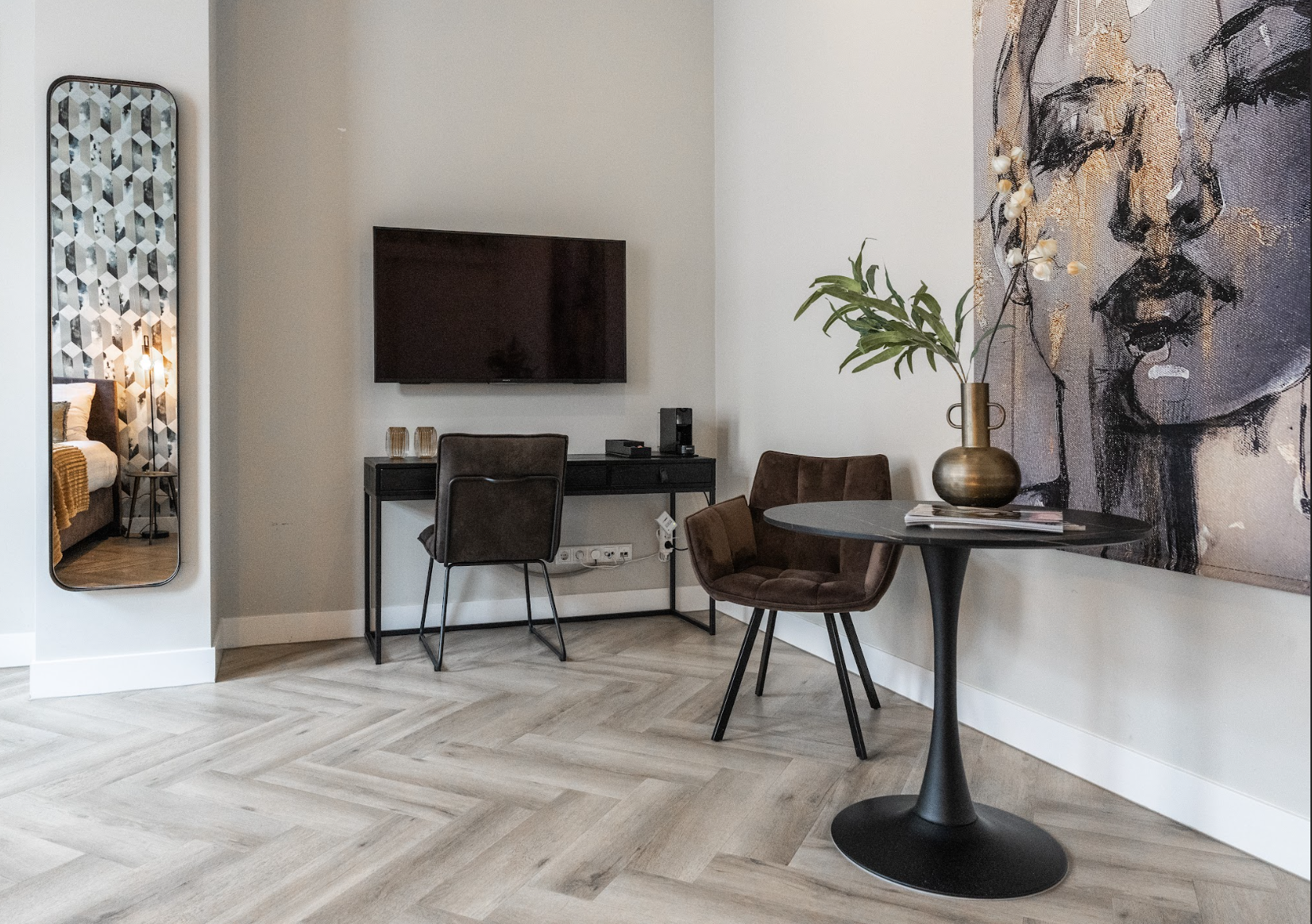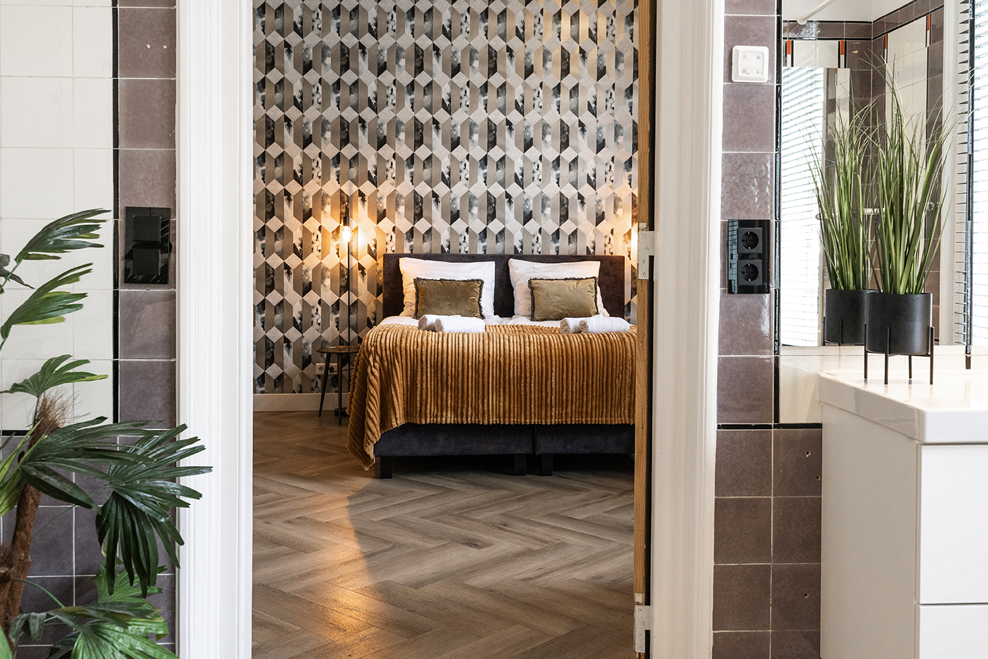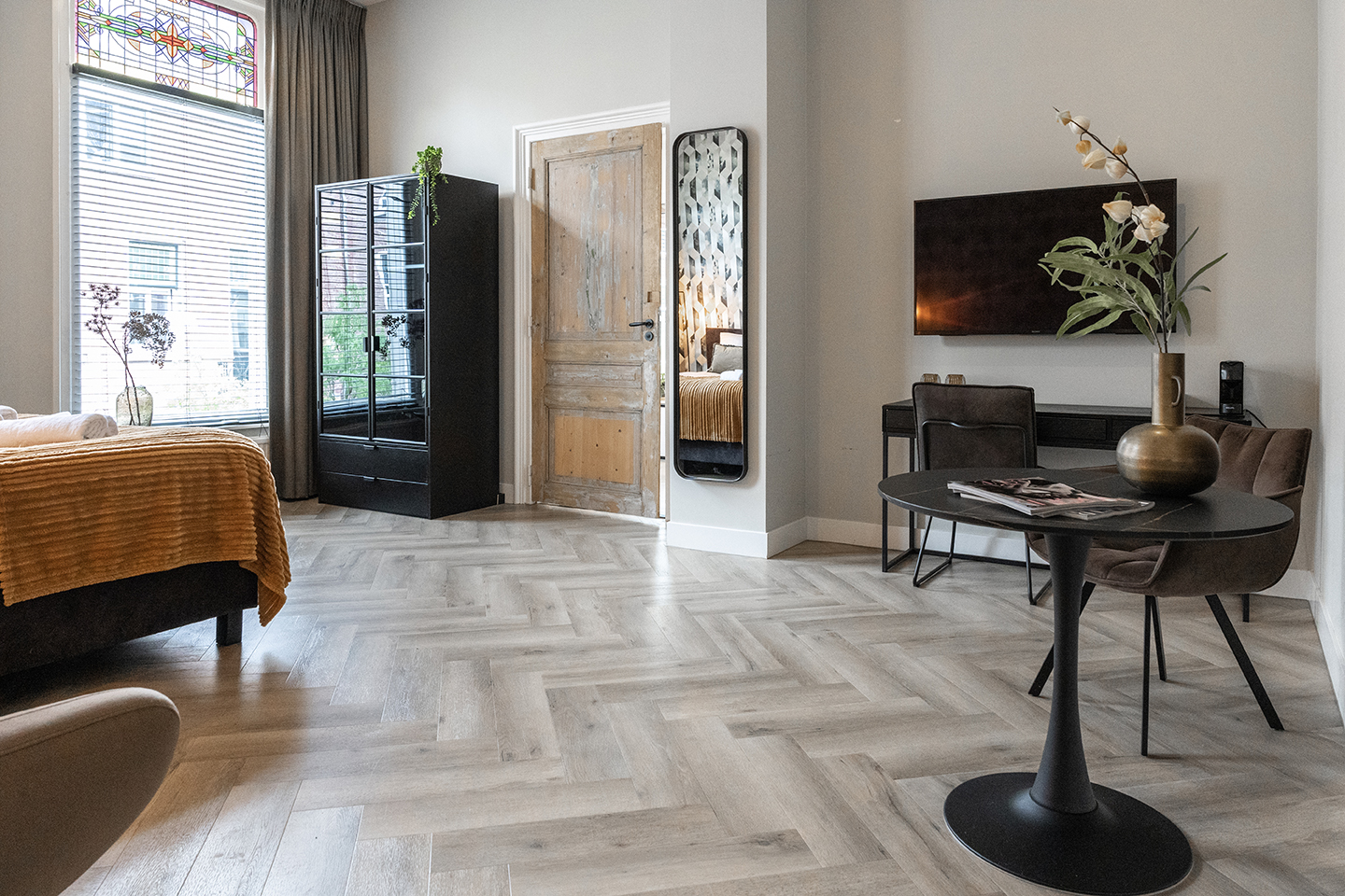 Cozy room with bath, 35m2, fast, stable WiFi and herringbone floor.