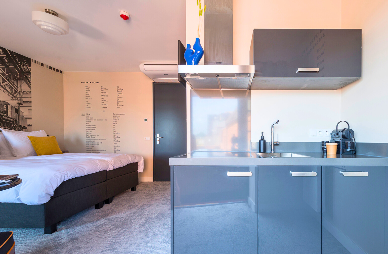 Affordable Studio Apartment at Bed en Koffie Central – Appartement Tilburg Stay in this budget-friendly studio in Hotel Centrum Tilburg, located on Spoorlaan. Perfect for those who want to overnachten Tilburg in style. ✅ New kitchen and bathroom – modern and fully equipped ✅ Washing & dryer are shared - located on the first floor. ✅ Private apartment with smart TV and fast Wi-Fi ✅ Located inside Hotel Centrum Tilburg. ✅ Close to shops, restaurants, and transport.
