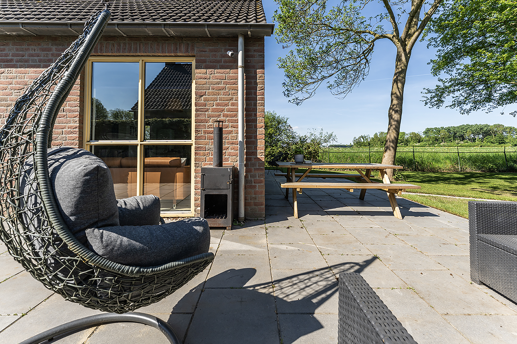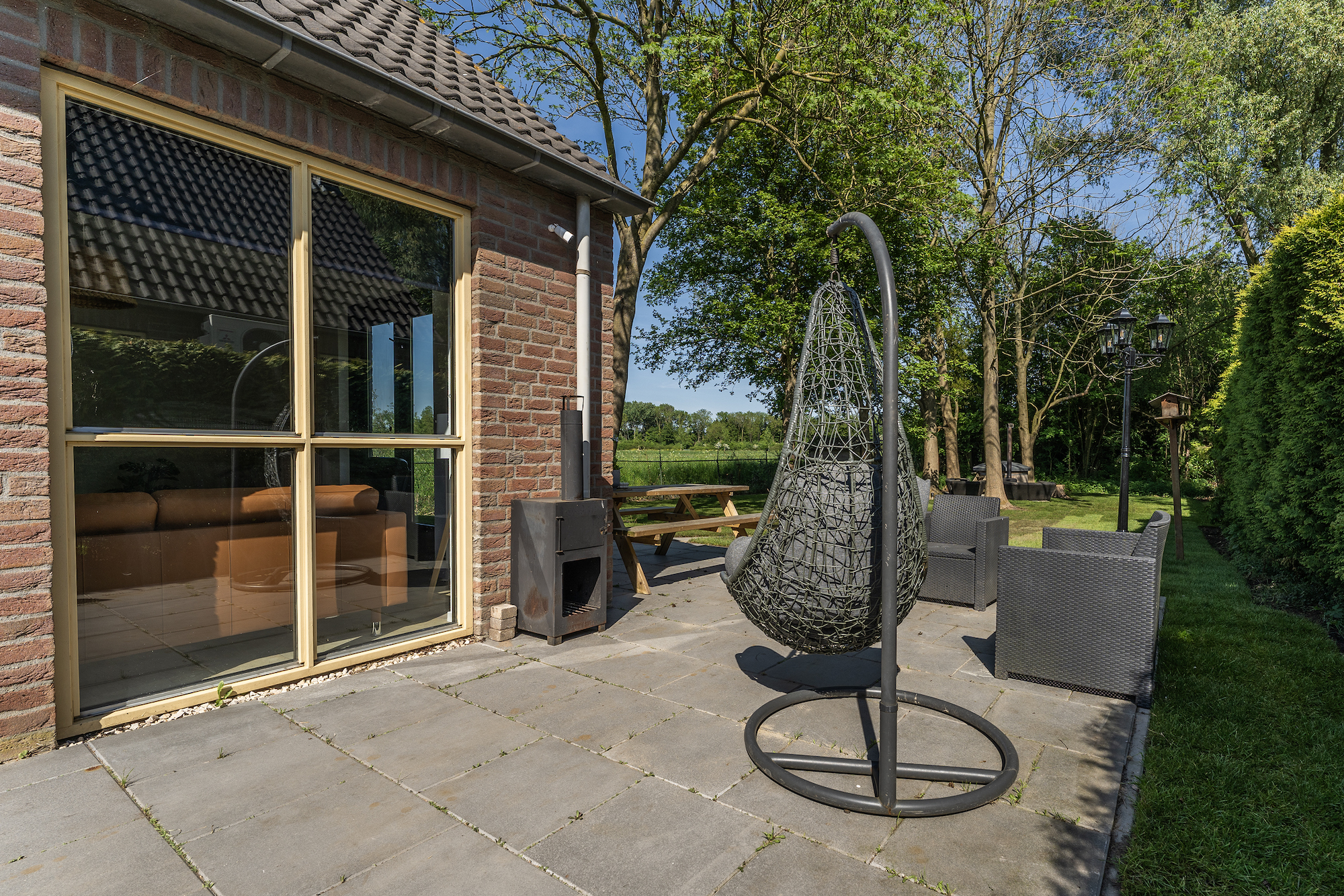 Surrounded by greenery and fresh air, the house is clean