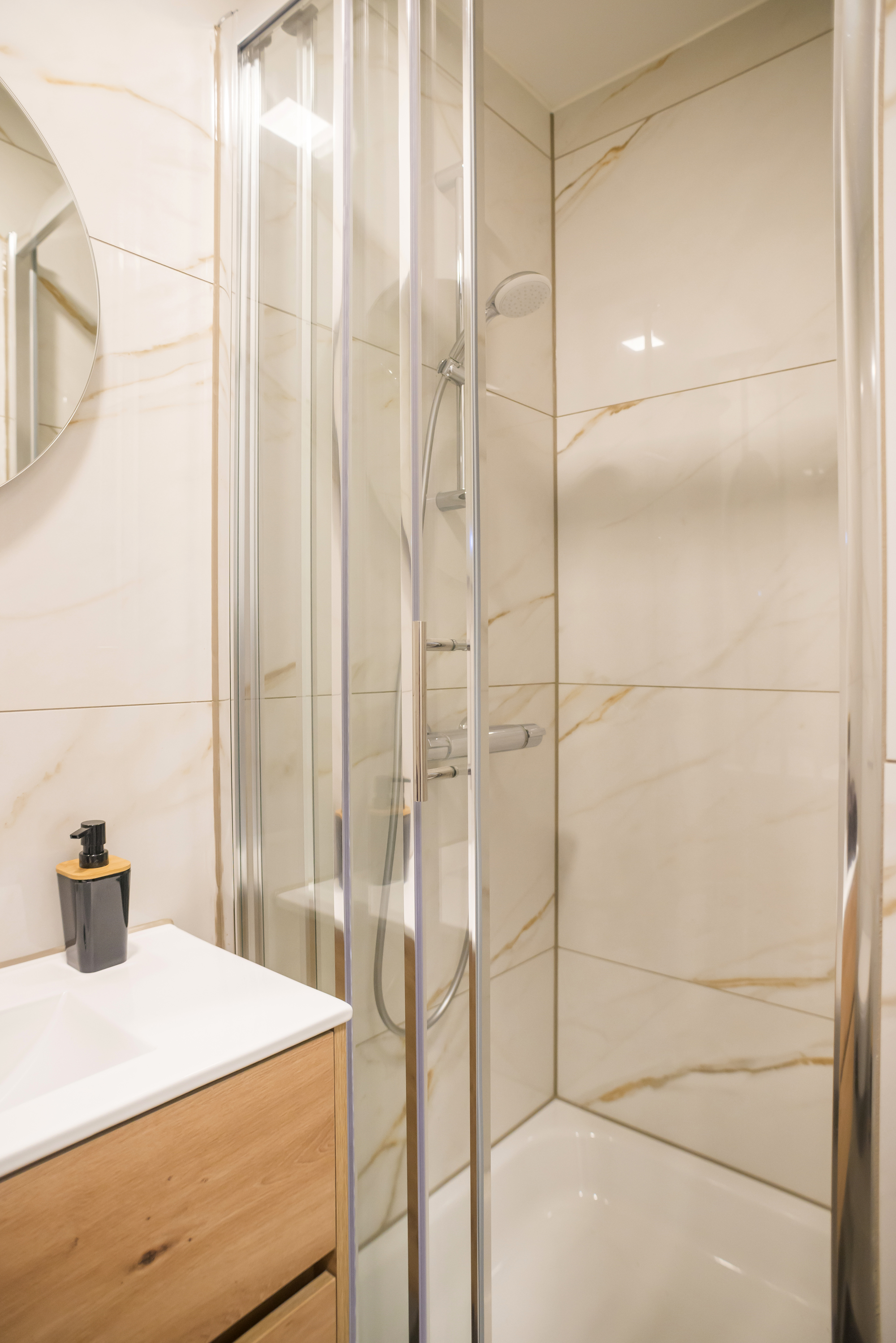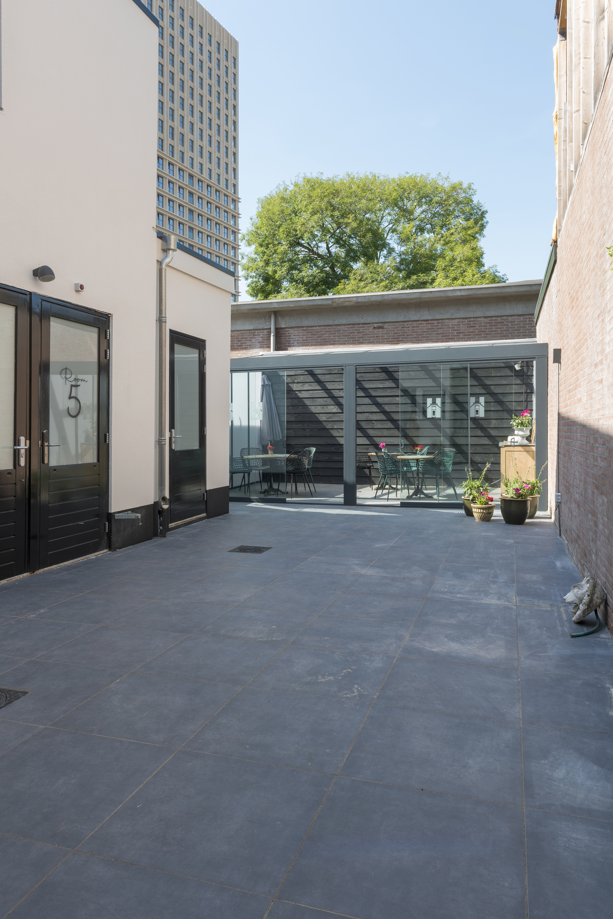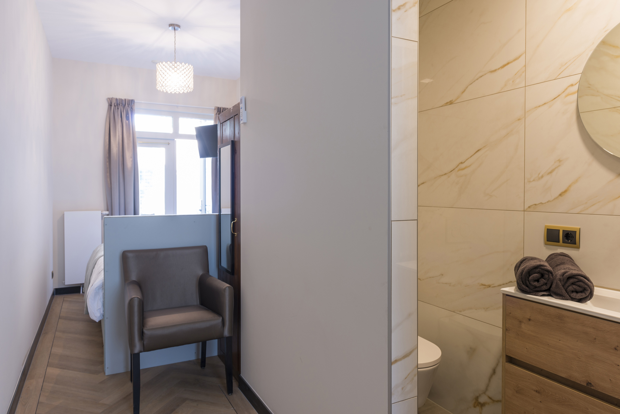 You book your own cozy suite in the Harmony Building. At our self-service accommodation, you can count on a comfortable bed and a private, newly renovated bathroom. For your first night, I’ll provide coffee, toilet paper, and trash bags—after that, supermarkets are just around the corner for all your essentials. You’ll also have access to the shared kitchen in the building, as well as a lovely patio where many guests enjoy relaxing. The central location is one of the highlights—shops, restaurant