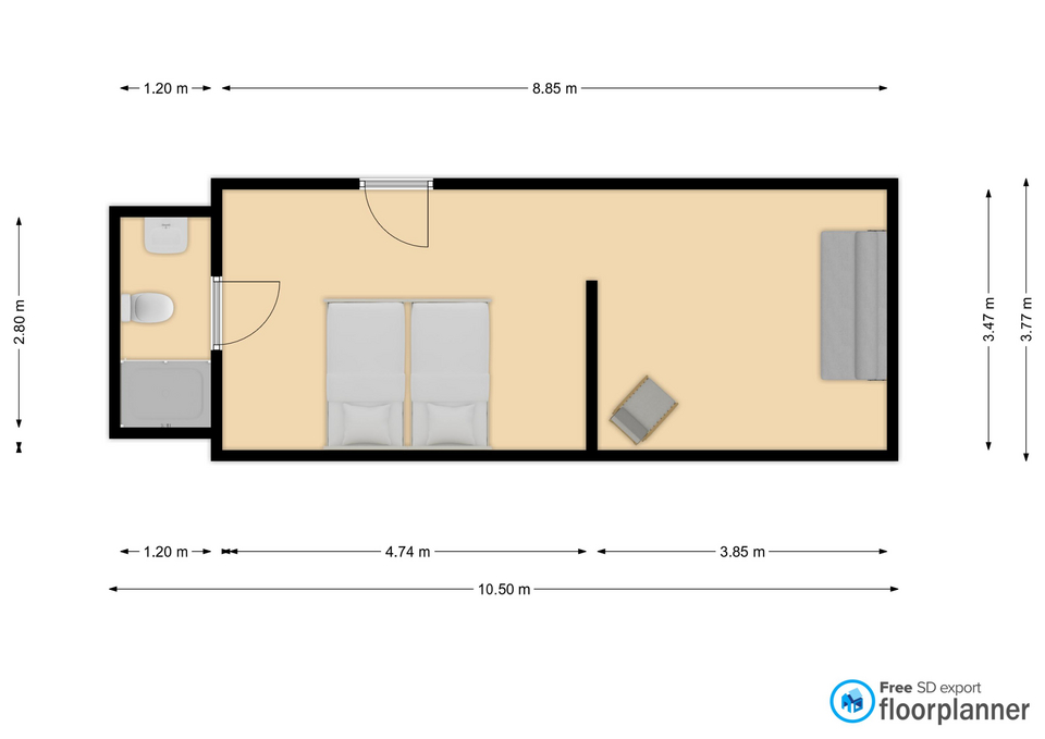 ☀️ Enjoy a sunlit room featuring a charming vintage bathroom, 🛏️ two luxurious box-spring beds, and a comfortable sofa bed—perfect for families or friends. 🥐 Start your day at the cozy nearby eatery, offering a variety of breakfast and lunch options to suit every taste.