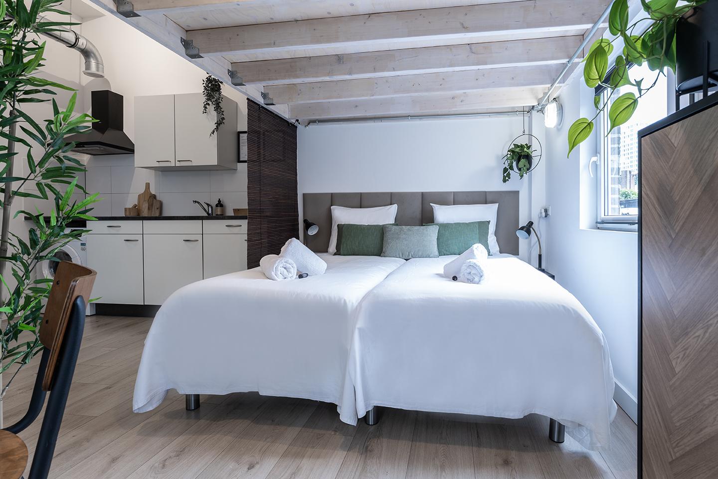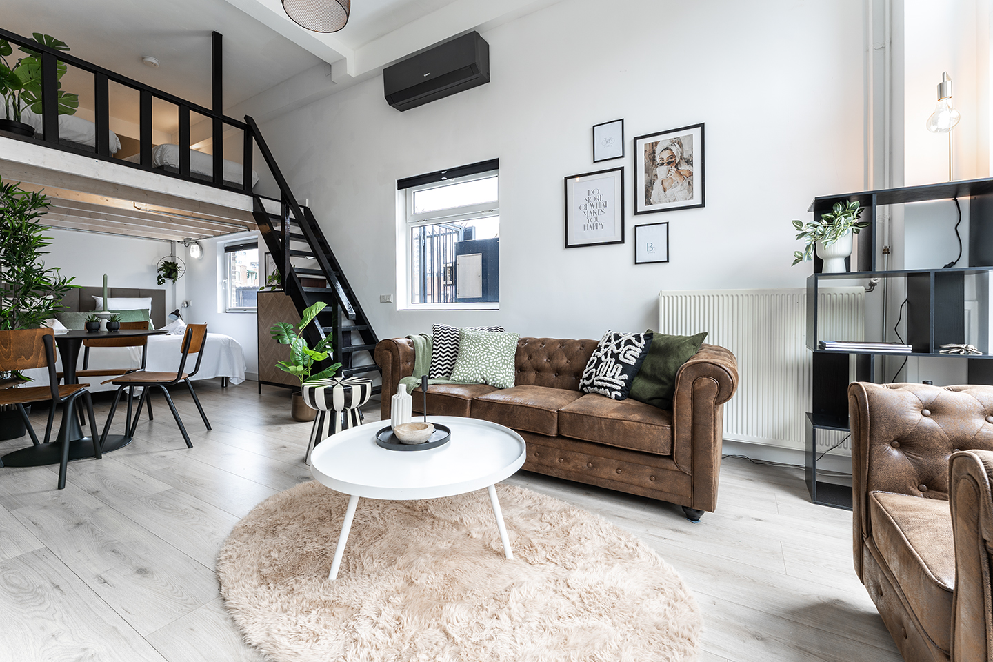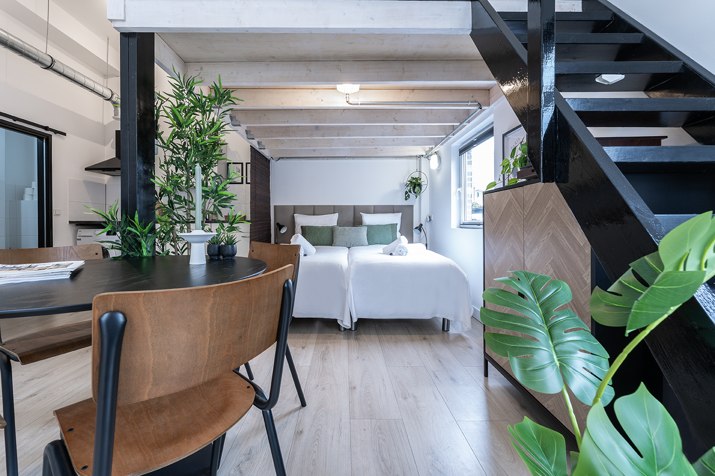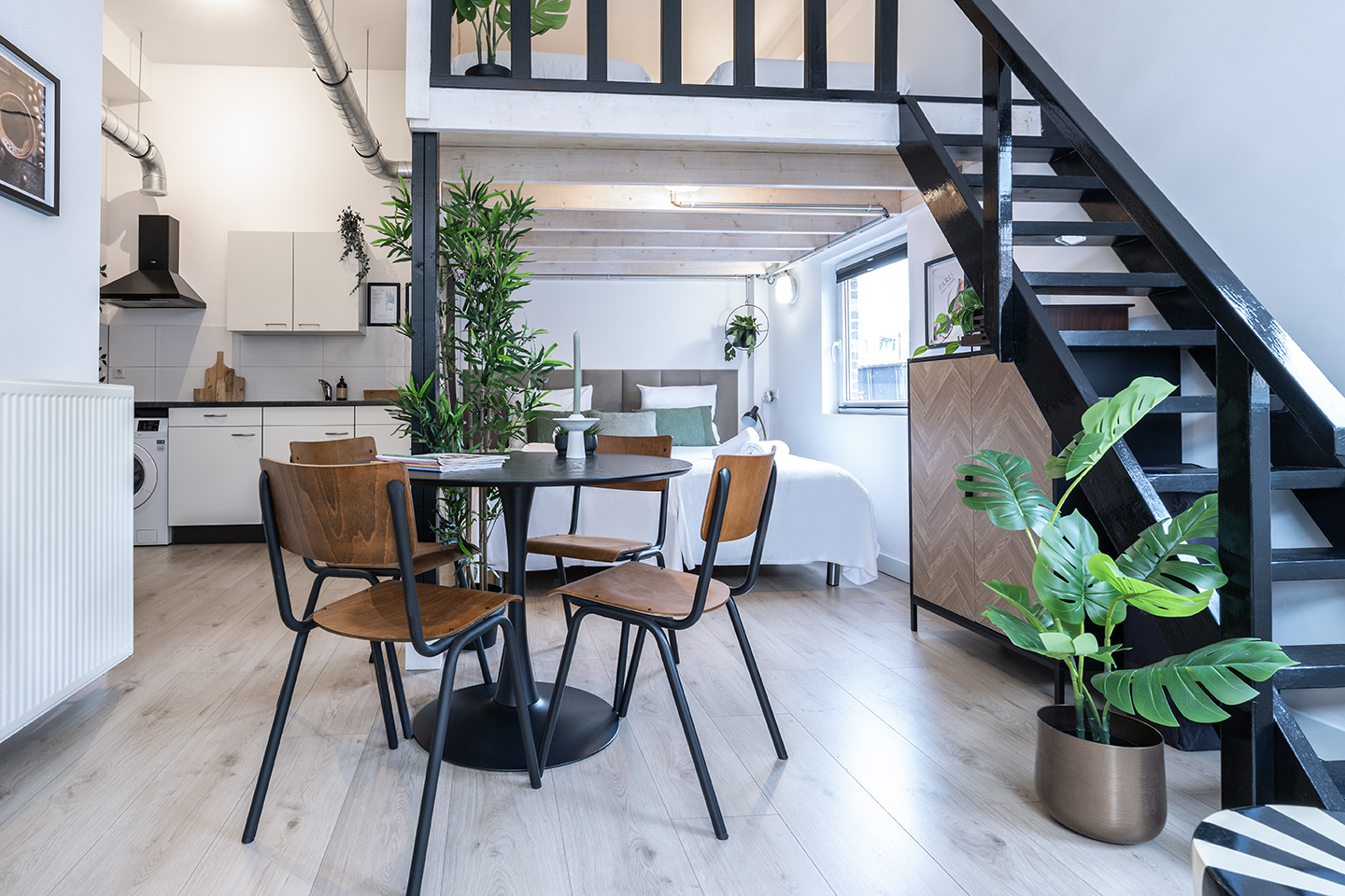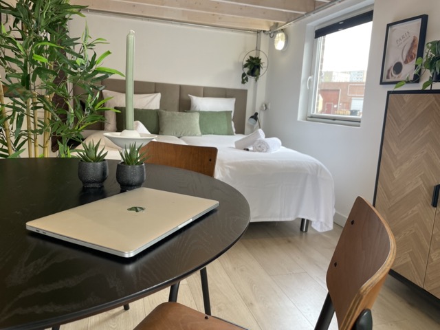Stylish and spacious open loft with double sleeping areas in the heart of Tilburg. Modern, bright, and fully equipped with kitchen, fast WiFi, smart TV, and workspace — perfect for a city getaway or comfortable workation.