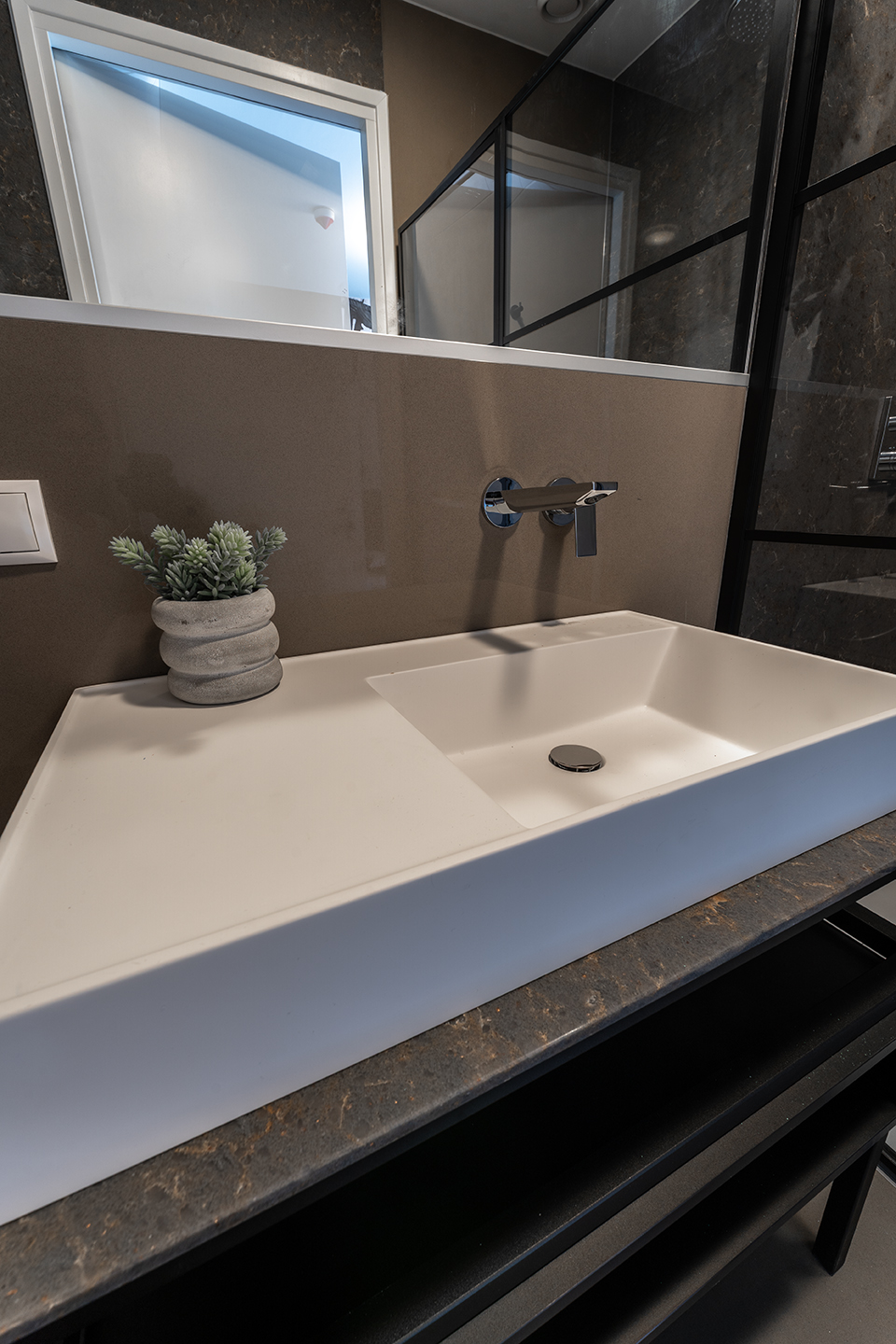Clean, modern bathroom with hot shower