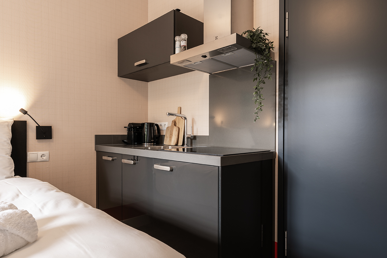 Modern king studio in the heart of Tilburg! ✨ Featuring a private kitchen, A/C, smart TV, dining space, and all essentials. Ideal for couples or business travelers. Close to shops, restaurants, and public transport.