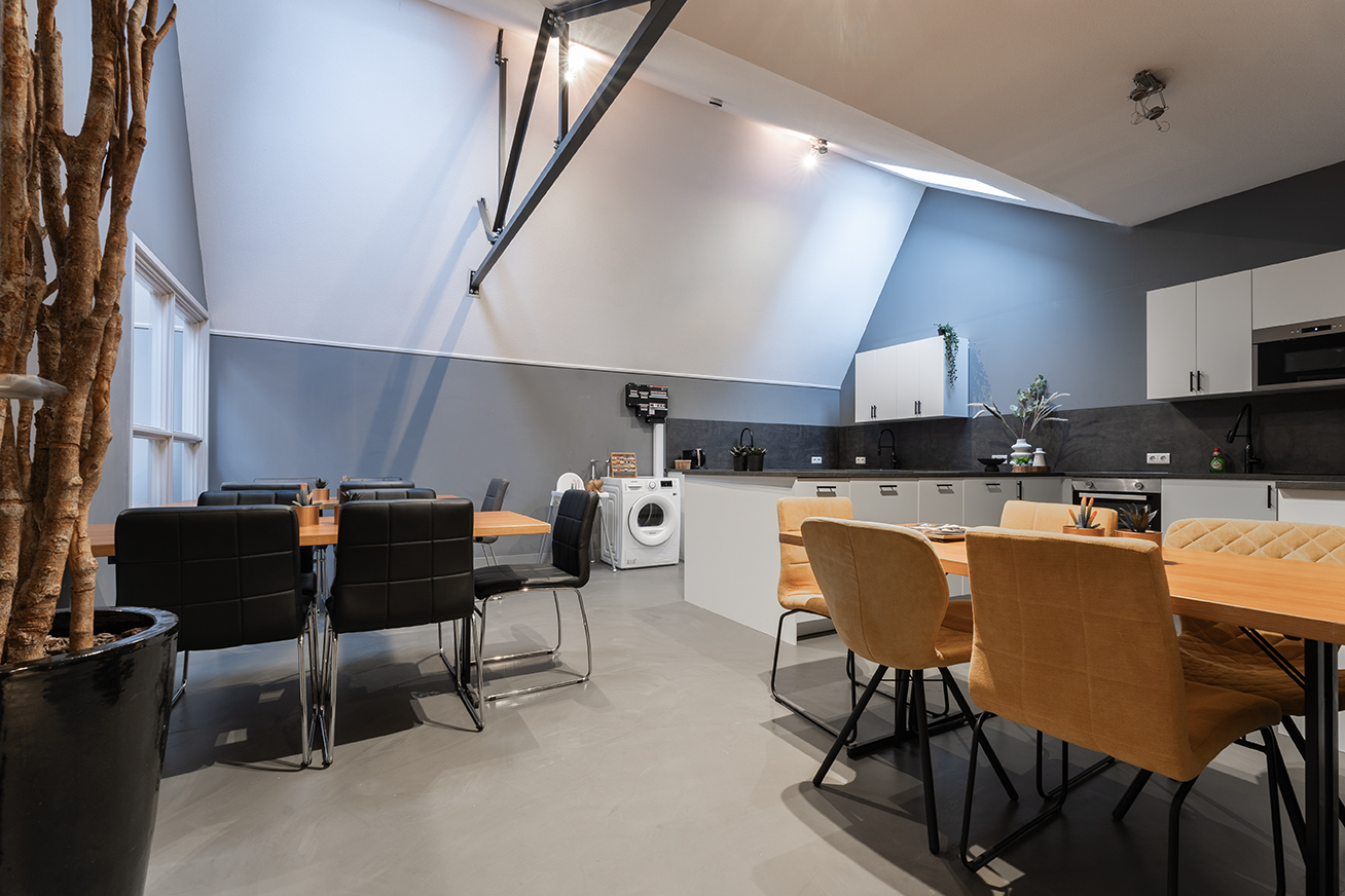 Stay at the historic Weaving Mill Suites in Tilburg. Enjoy a spacious private room with modern comfort and make use of the large, fully equipped communal kitchen during your stay.