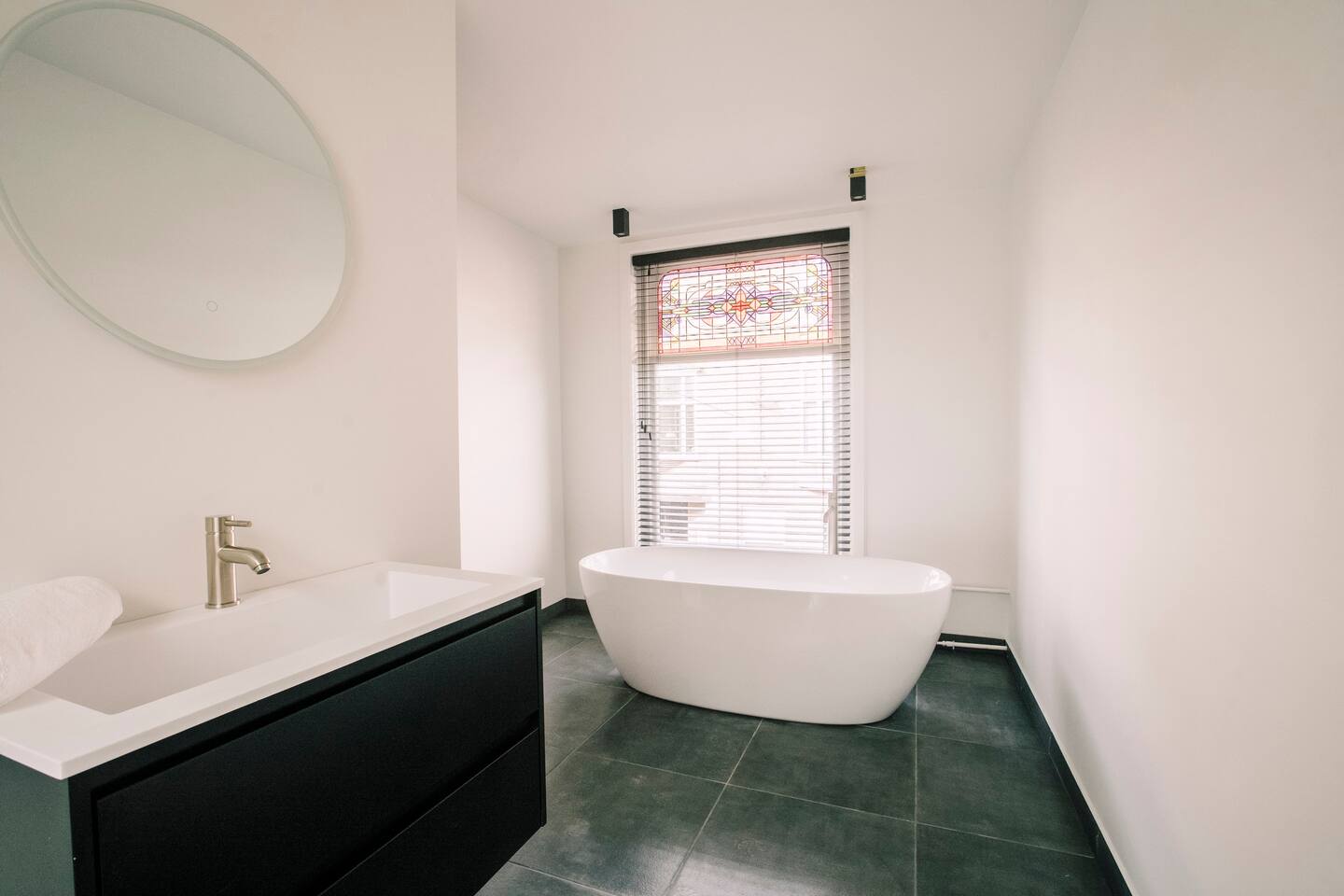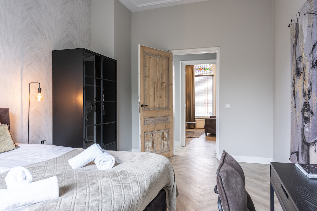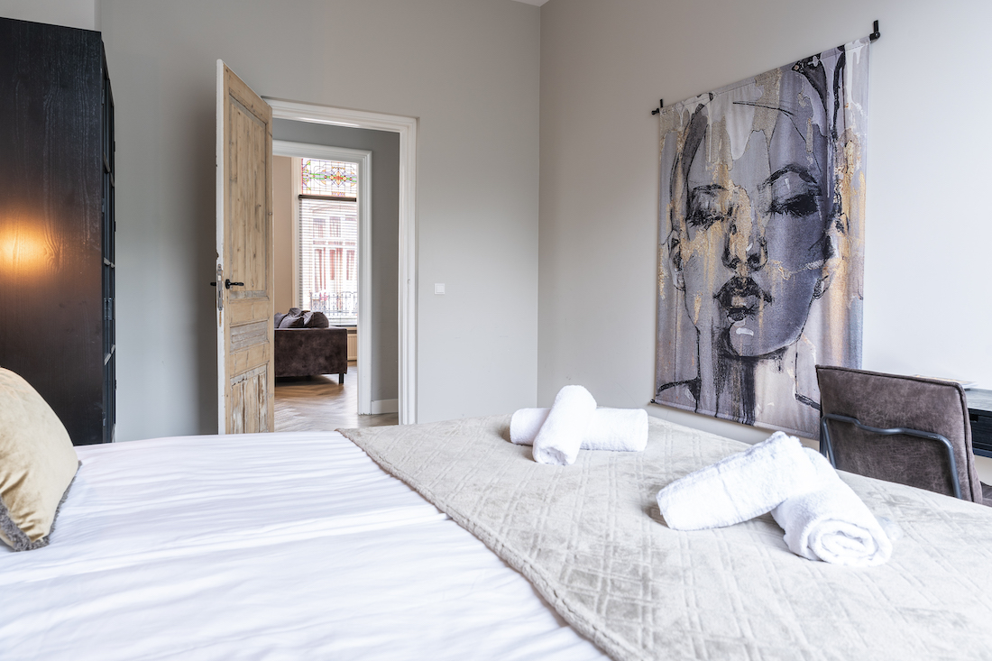 Welcome to Bed en Koffie – Hotel Centrum Tilburg! This 85m² apartment has two bedrooms with queen-size beds (can split into singles), a private kitchen, and a luxurious bathroom with freestanding bath and walk-in rain shower.